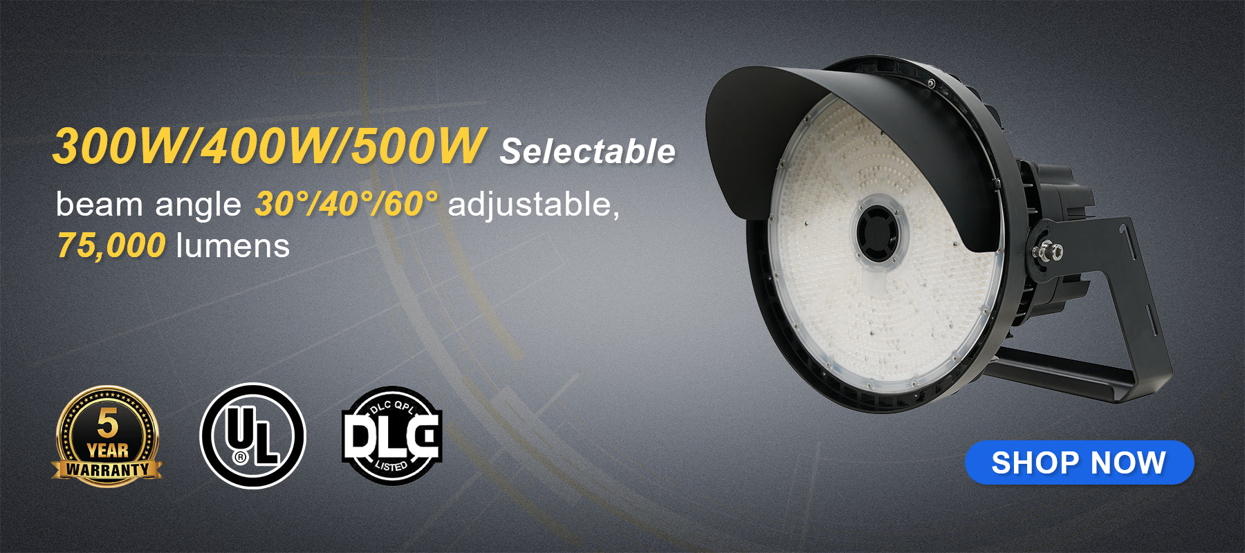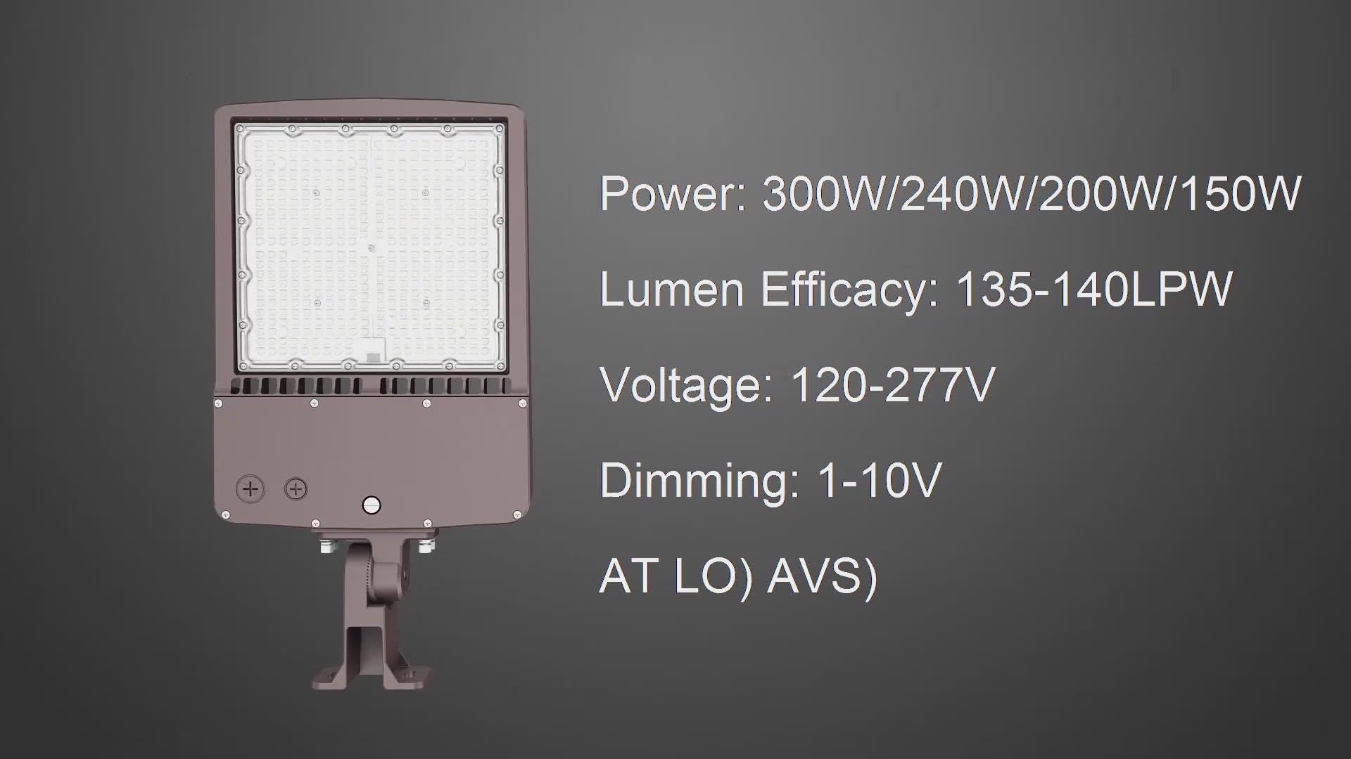 300W LED Parking Lot Light – 5000K-AC 120~277V-Trunnion & Pole Mount-UL DLC Listed