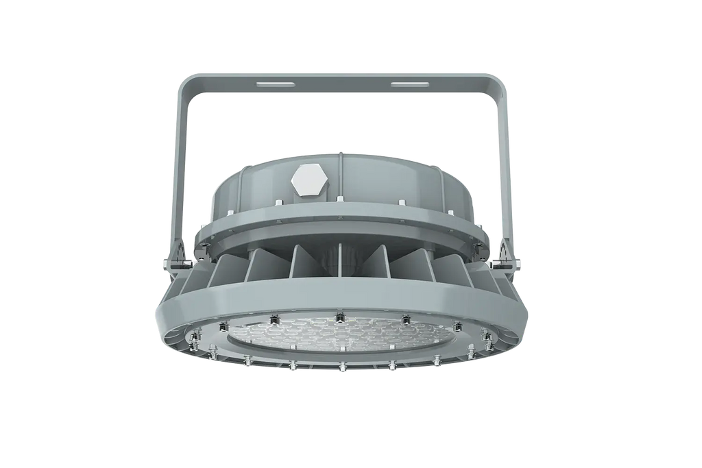 The TANLITE 150W LED Explosion Proof Round Light is engineered for hazardous location lighting, delivering a powerful 20,250 lumens of crisp 5000K daylight illumination. Designed for Class I, Division 2 (C1D2) and Zone 2 environments, this explosion-proof LED high bay ensures maximum safety, reliability, and energy efficiency. Its universal 100–277VAC input and smooth 0-10V dimming make it perfect for new installations or retrofits, replacing 400W–600W HID fixtures with instant-on performance and lower maintenance costs. Built with a rugged, corrosion-resistant housing and sealed optics, it performs flawlessly in harsh indoor or outdoor conditions.