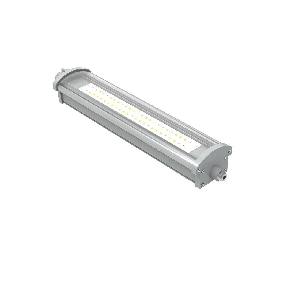 Engineered for demanding industrial environments, this 40W explosion-proof linear fixture combines robust construction with exceptional light output. Delivering 5,600 lumens of neutral 5000K illumination, it features smooth dimming capability and broad voltage compatibility (AC 100–277V) for seamless integration into existing systems. The sealed, corrosion-resistant design withstands exposure to flammable gases, vapors, dusts, and fibers while maintaining minimal maintenance requirements. Purpose-designed for hazardous locations including production facilities, catwalks, and storage aisles, the FLF Series provides dependable performance backed by a comprehensive 5-year warranty.