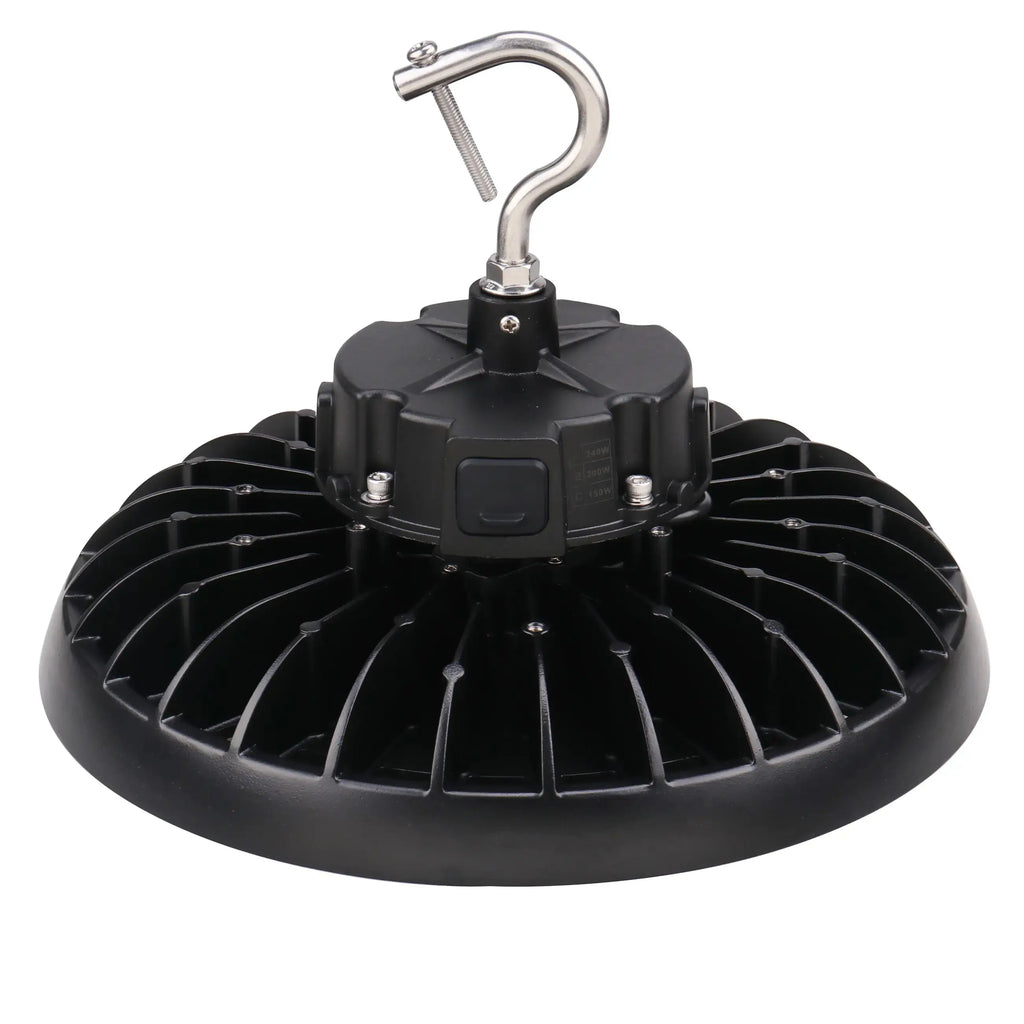 The TANLITE LED UFO High Bay Light is a high-output, energy-efficient lighting solution designed for warehouses, factories, and large commercial spaces. Featuring three selectable wattage options (150W / 200W / 240W) and three selectable color temperatures (4000K / 5000K / 5700K), this versatile high bay allows installers to adjust brightness and light color on-site, reducing SKU complexity and inventory costs.